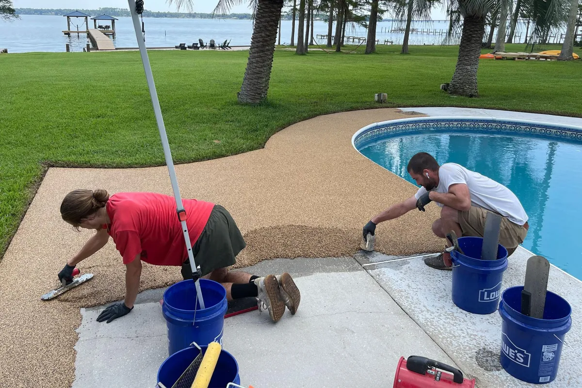 Concrete Artisan is the premier decorative concrete company serving the Florida Panhandle and Alabama, specializing in Soft-Rock Flooring, Deco-Stone Flooring, Epoxy Stone Coatings, One-Day Flake Coatings, Polyaspartic Flake Floors, Concrete Overlays, Sculpted Concrete Environments, and Custom Water Features. With years of industry expertise, we transform residential, commercial, and outdoor spaces into visually stunning, durable surfaces that withstand the test of time.